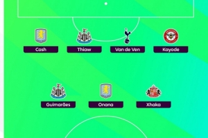 后卫:卡什(阿斯顿维拉)、佳夫(纽卡斯尔)、范德芬(热刺)、迈克尔-卡约德(布伦特福德)
