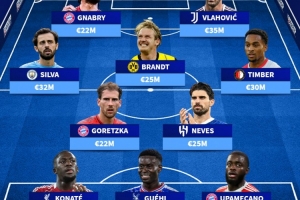 中场:格雷茨卡(拜仁)、鲁本-内维斯(利雅得新月)、B席(曼城)、布兰特(多特)、昆滕-廷伯(费耶诺德)