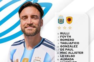阿根廷首发:鲁利、福伊特、罗梅罗、塔利亚菲科、尼科·冈萨雷斯、德保罗、麦卡利斯特、洛塞尔索、梅西、劳塔罗、阿尔马达